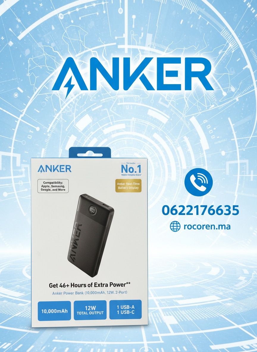 Disponible sur Rocoren.ma, distributeur officiel Anker au Maroc, cette batterie externe bénéficie d’une garantie 1 an et d’un service client local à votre écoute.