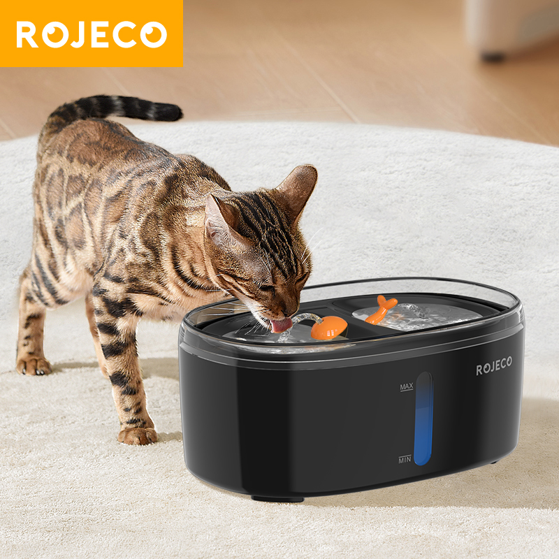 Découvrez la fontaine à eau ROJECO 2.5L pour chats et animaux de compagnie. Distributeur automatique avec filtre pour garantir une eau propre et fraîche en tout temps.