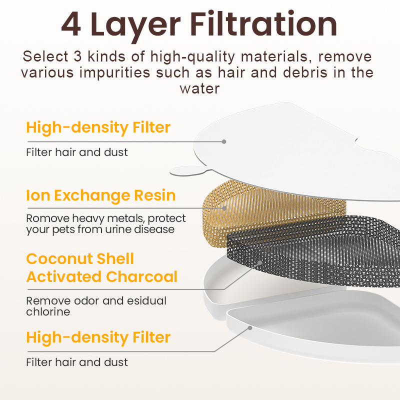 Avec une capacité de 2.5L, elle permet un approvisionnement constant en eau, réduisant ainsi le besoin de remplir fréquemment la fontaine. Le filtre intégré assure que l’eau reste propre, en éliminant les impuretés et en garantissant une eau fraîche pour votre animal.